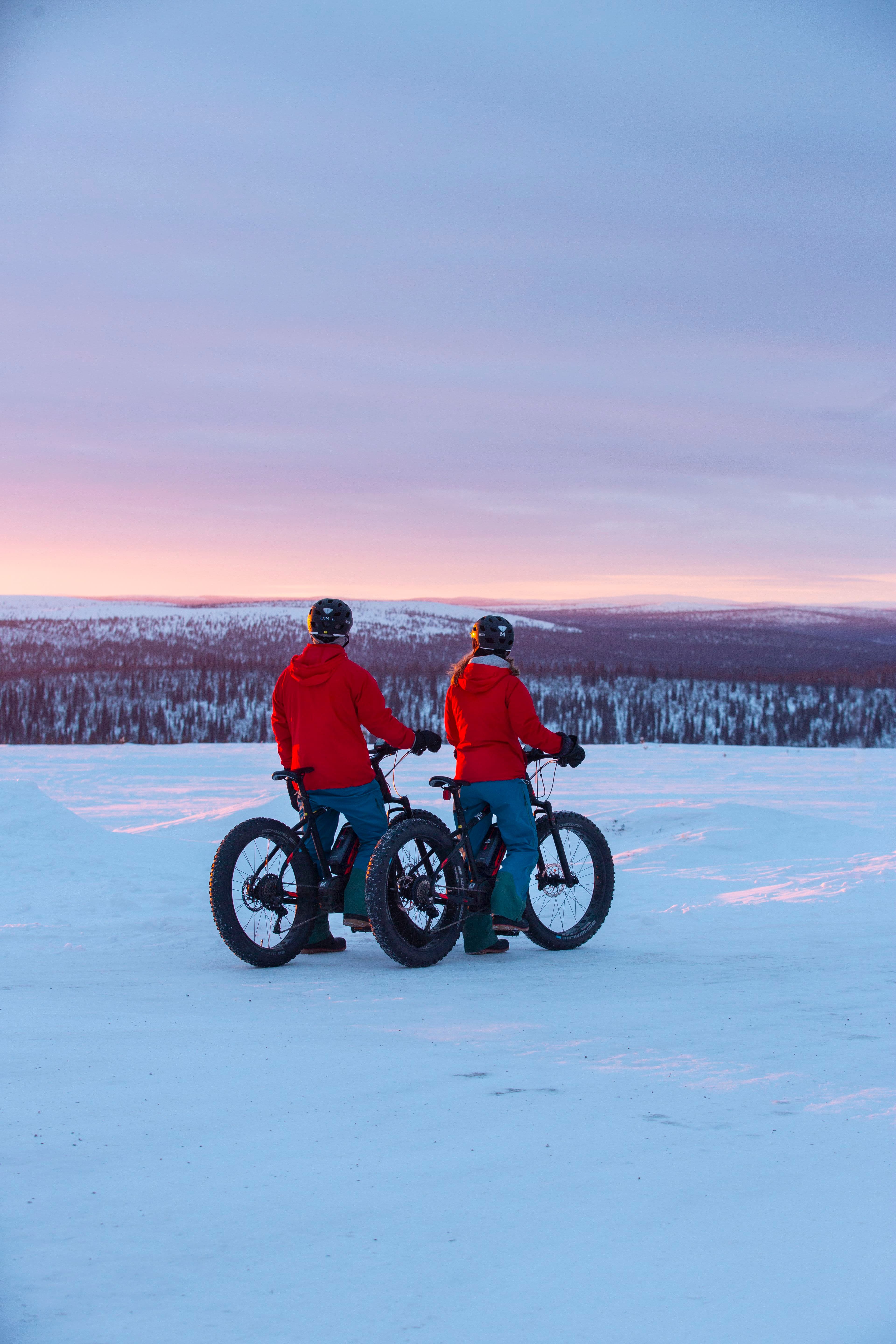 Rent a bike from Lapland Safaris and enjoy cycling in magical landscape of Lapland. We have a selection of fatbikes and bicycles suitable for all terrains and sizes. We also rent cycling accessories.