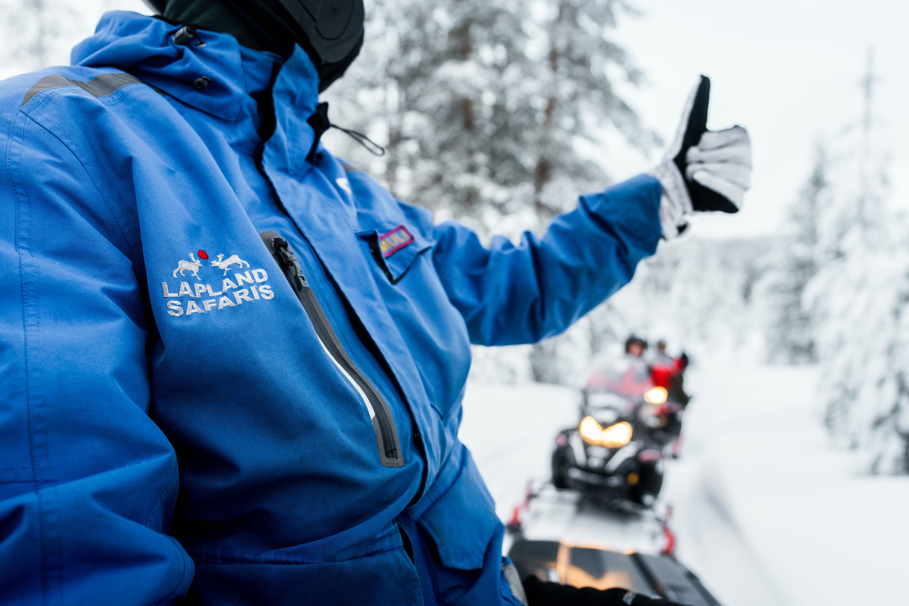 On safaris we always drive in one line. The guide drives in front, and you will follow behind keeping a safety distance of at least 20 meters between each snowmobile. This is so you will have enough time to react in case of an emergency.