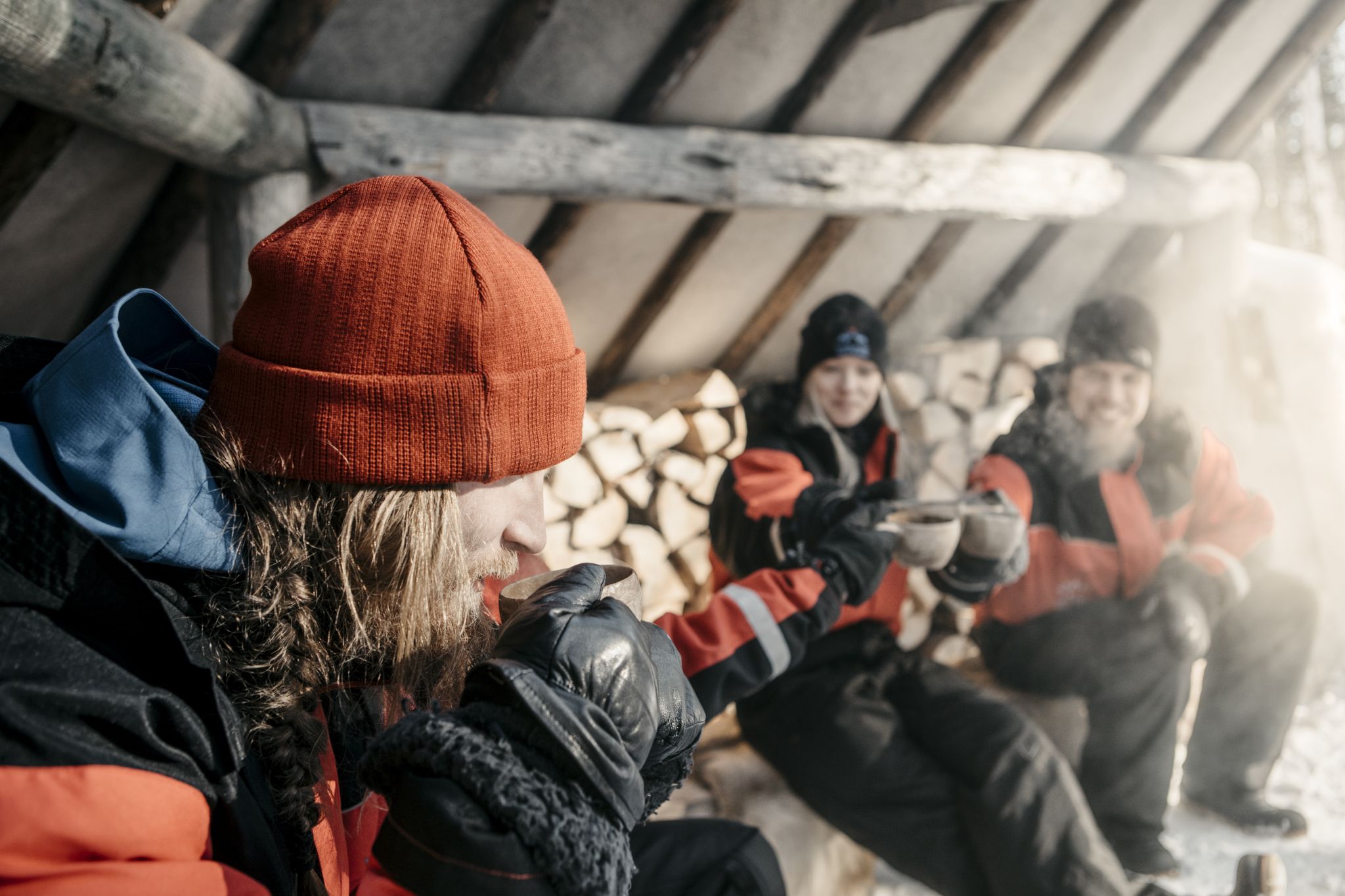 Head to wilderness on a snowmobile trail through snowy forests, where you can admire the beautiful surrounding wilderness of Lapland. Follow the trail through white, snow-covered fields to arrive at suitable ice fishing spot. The silence will envelop you as you get ready for fishing. Try your hand at traditional ice fishing and enjoy a cup of coffee and delicious bun over a campfire. Afterwards, return to Luosto for a well-earned rest.