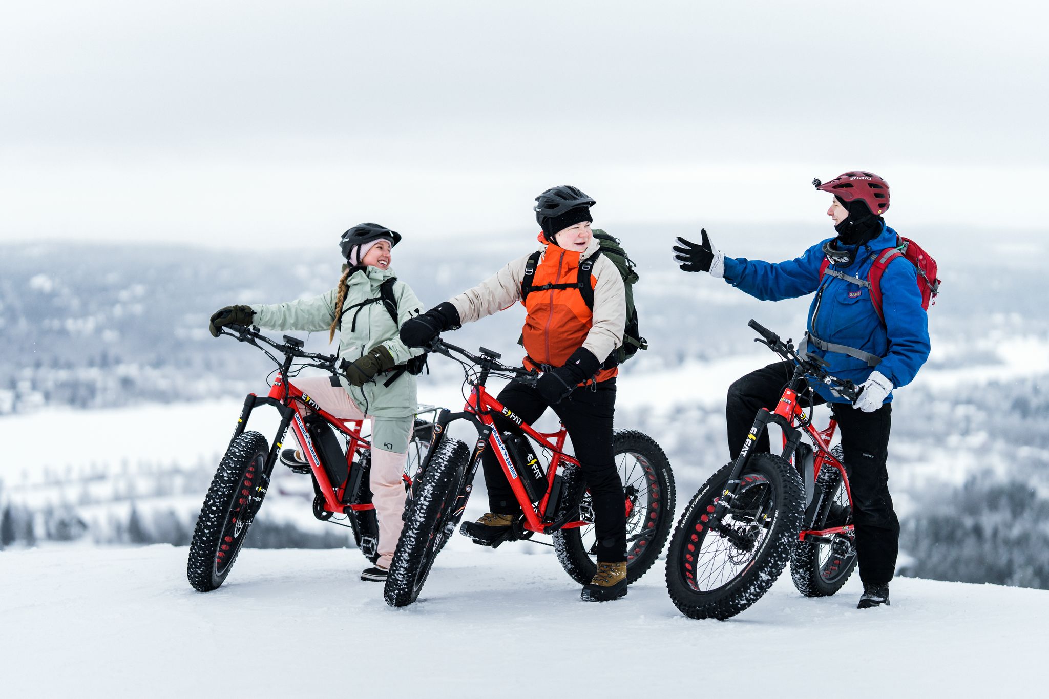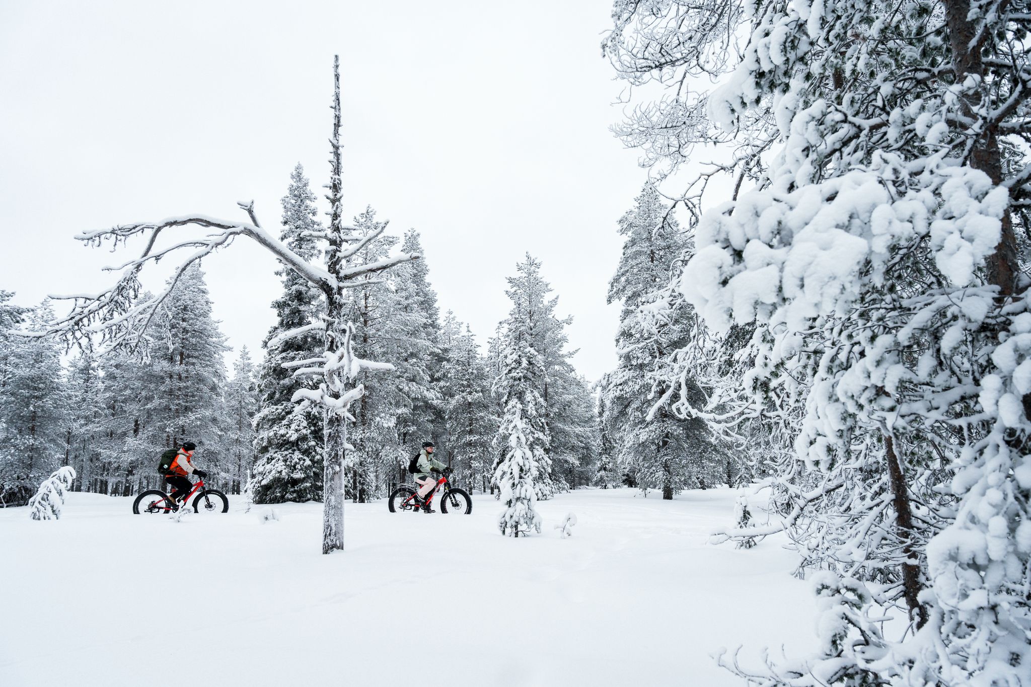 With this safari, you’ll have the unique chance to try out electric bikes and how they do in the Arctic. The journey starts right from the centre of Rovaniemi, where you’ll get to ride along ice- and snow-covered River Kemi to the renowned Ounasvaara hill. Then, it’s time to start the fun part – narrow winter biking tracks lead you all the way up to the top of the hill. While preparing for the next leg of the trip, you’ll get to stop at the rooftop terrace of Sky Hotel Ounasvaara and enjoy hot chocolate with a spectacular view over Rovaniemi. After the break, a snowy off-road track will lead you back down to the city.
