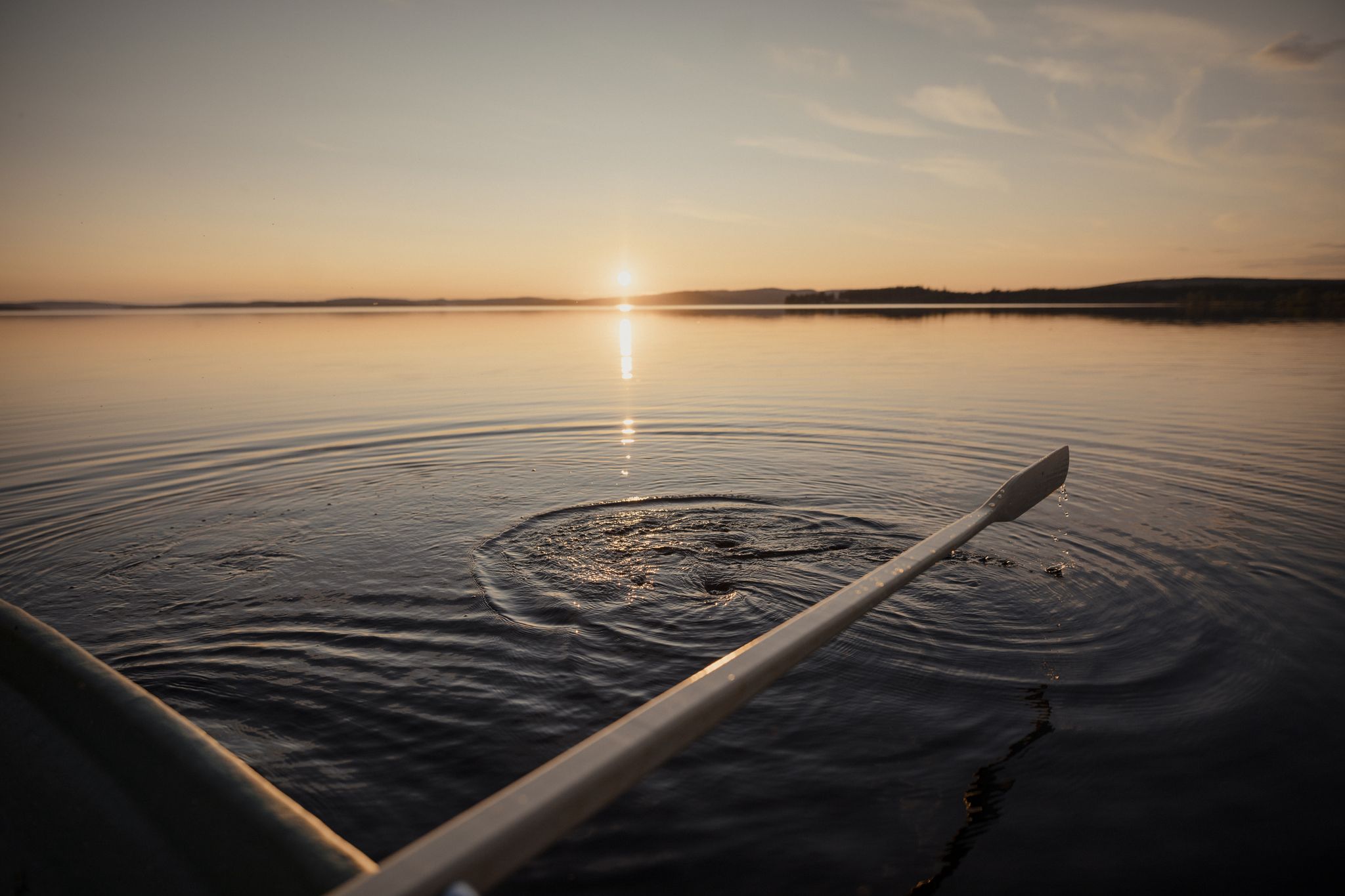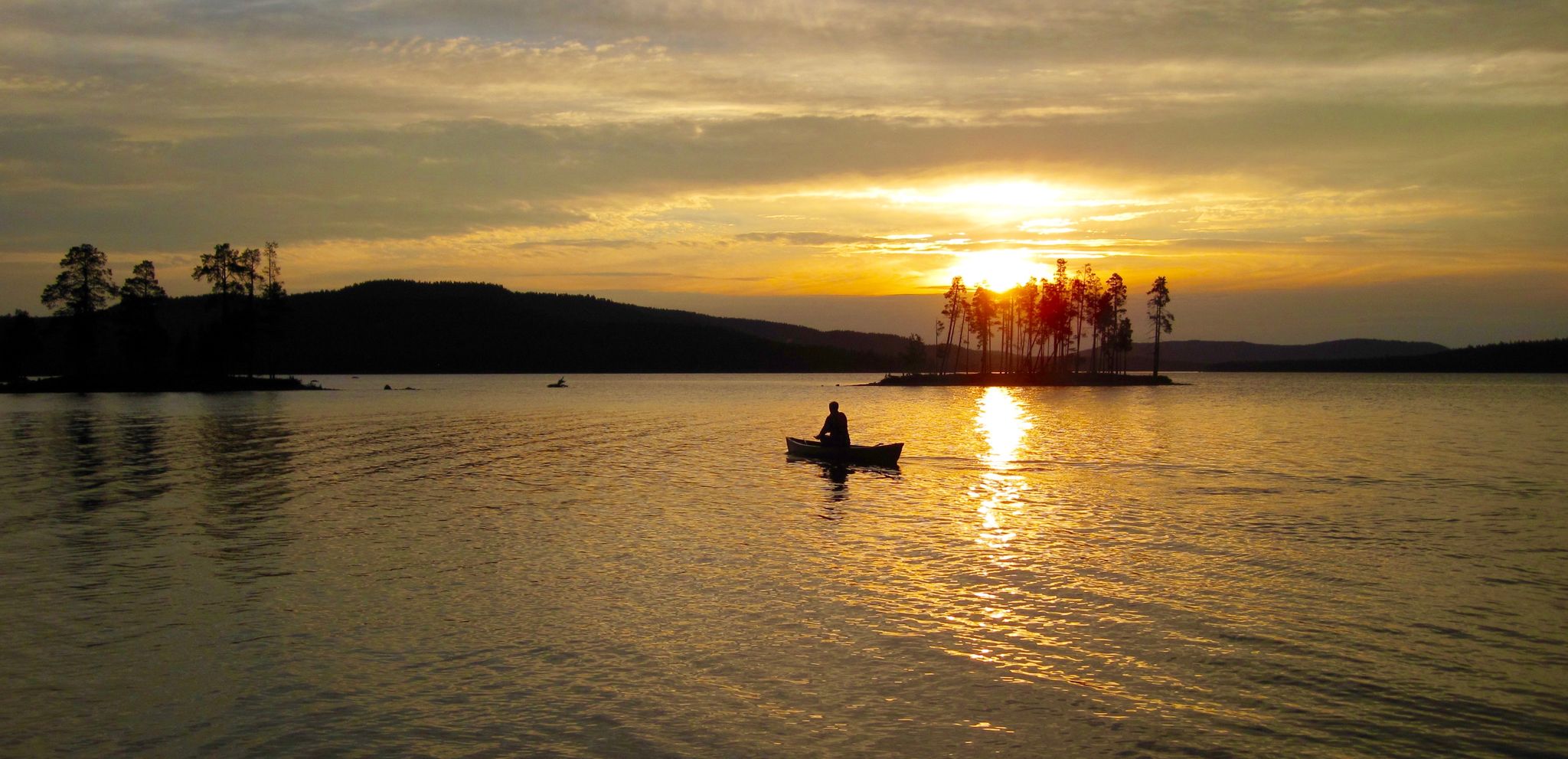 When you reach the forest lake, you will be seated in a small motorboat to cross the picturesque, crystal-clear lake to the wilderness cabin. Here you will spend a relaxing evening under the midnight sun heating the wood-heated sauna, collecting fresh natural spring water, preparing crepes on an open fire while listening to fascinating stories of Lappish nature. Your guide will also introduce you to the peace and tranquility of fishing on the pure clean lake, and you will have the chance to participate in one of Finland’s most traditional pastimes – the Finnish Sauna! When everything around you is bathed in an unimaginably warm, bright light, it is time to raise a toast to the magical white nights of Lapland.