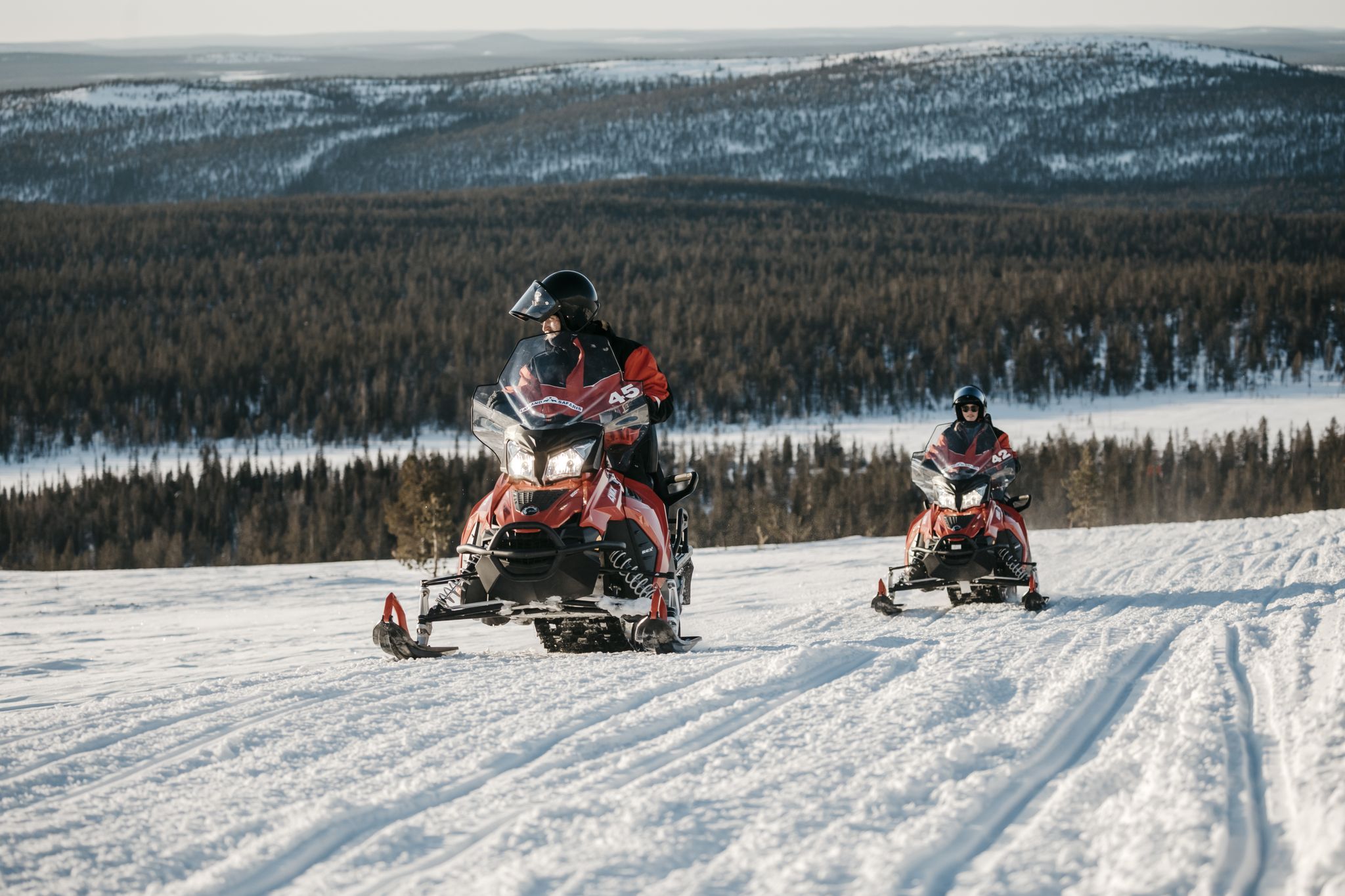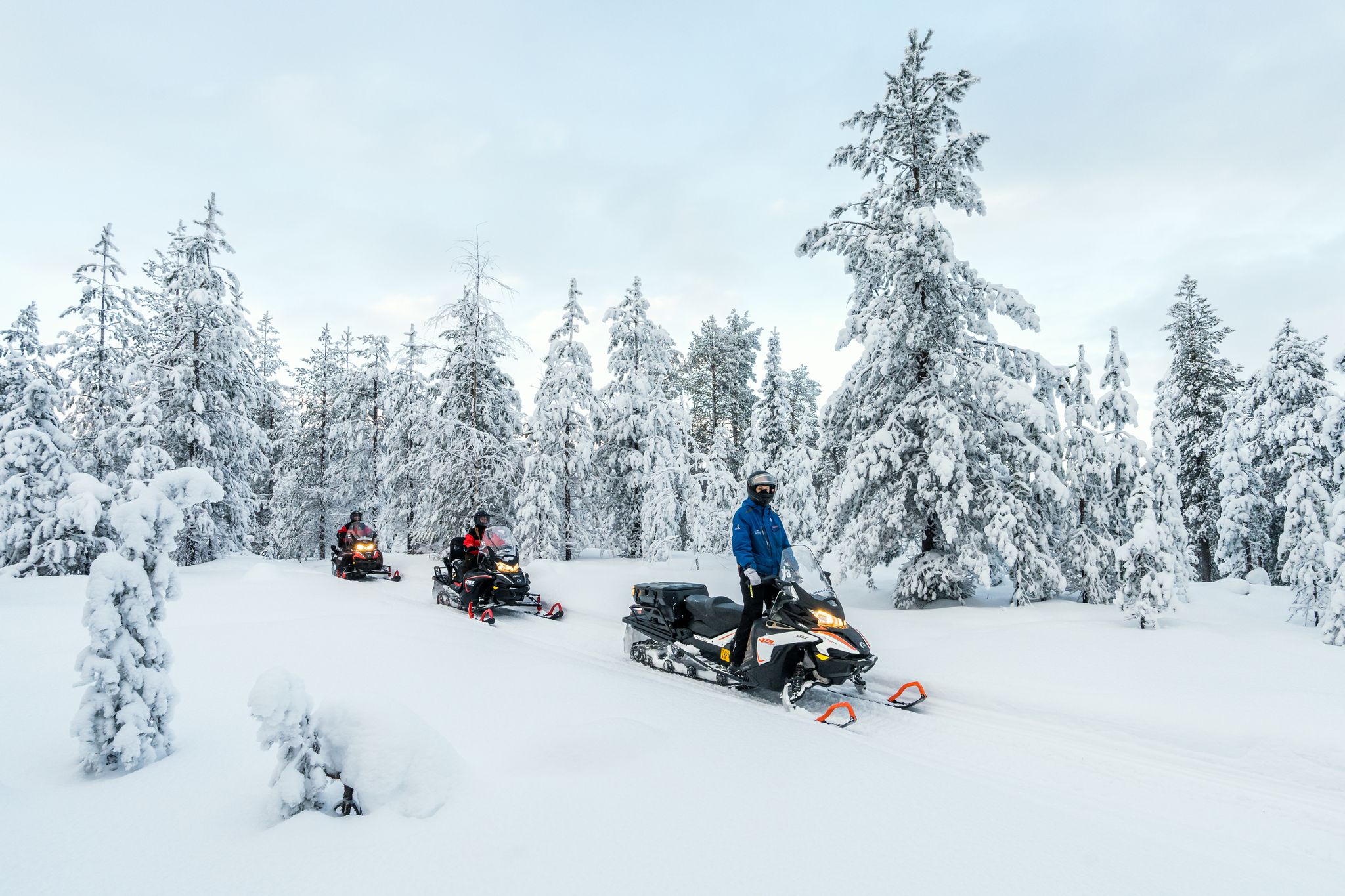 Head to the wilderness on a snowmobile trail through snowy forests, where you can admire the beautiful nature of Lapland. After following the trail through white, snowcovered fields, you'll arrive at an ideal ice fishing spot! Silence will envelop you as you get ready to fish. Try your hand at traditional ice fishing while enjoying a snack and a soothing cup of coffee over a campfire.