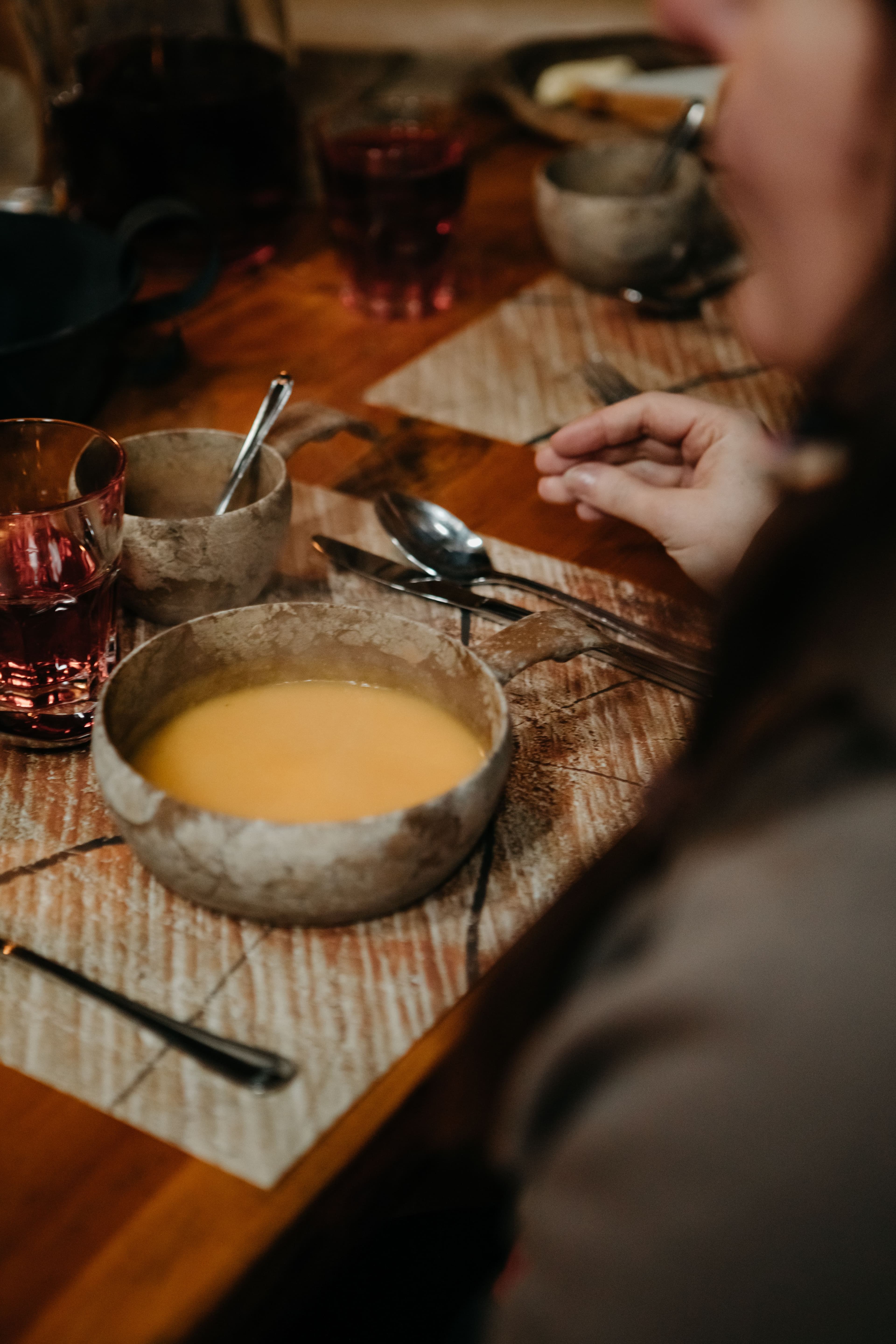 Fur Trappers Cottage is situated deep in the woods, up north from Rovaniemi. Inside the kota (cottage), you can find beautiful paintings that tell stories of traditional beliefs, and folklore surrounding how Northern Lights come to be, as well as animal hides and various equipment needed for hunting. At Fur Trappers Cottage you get to experience something magical, while enjoying a meal in the wilderness by the open fire.