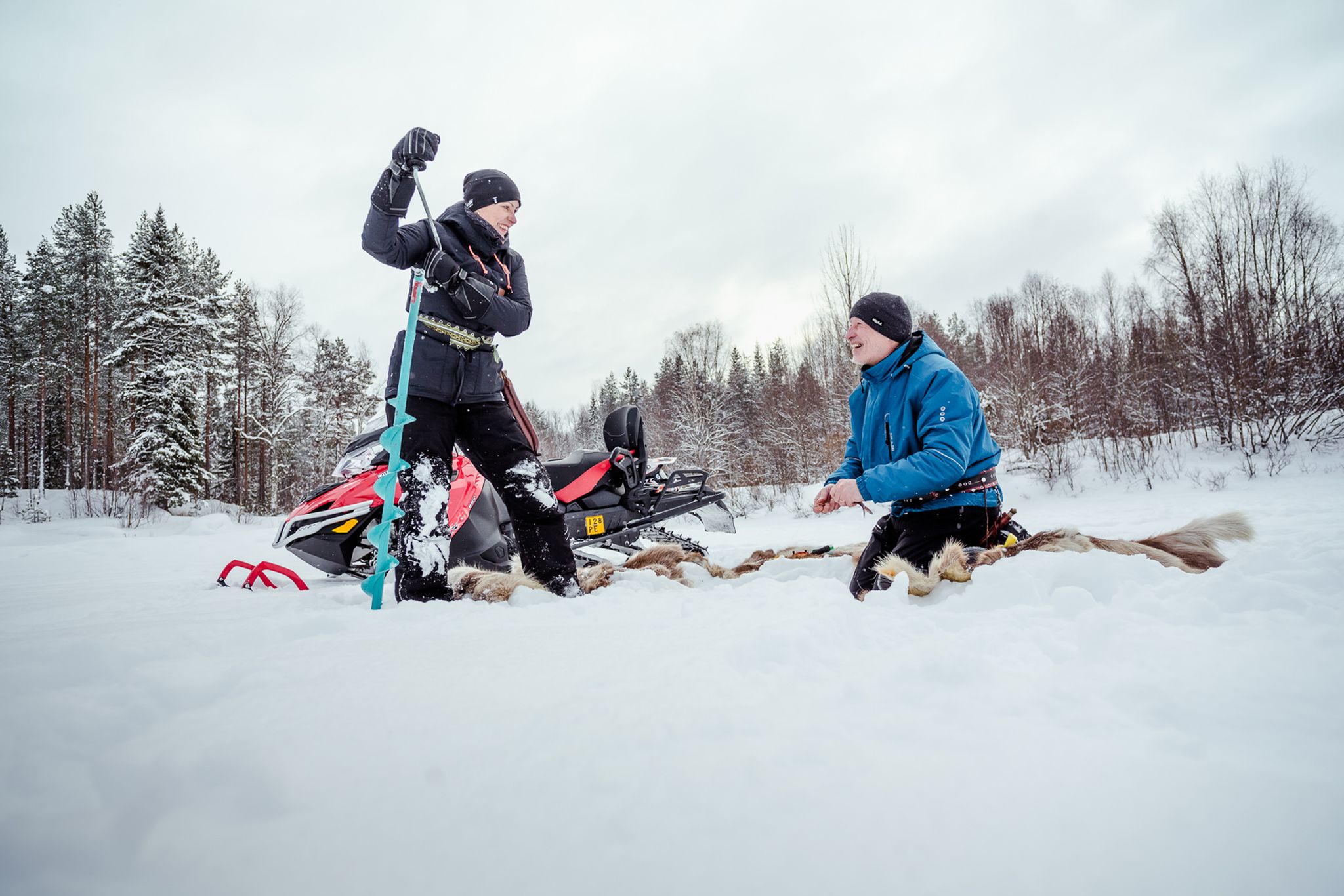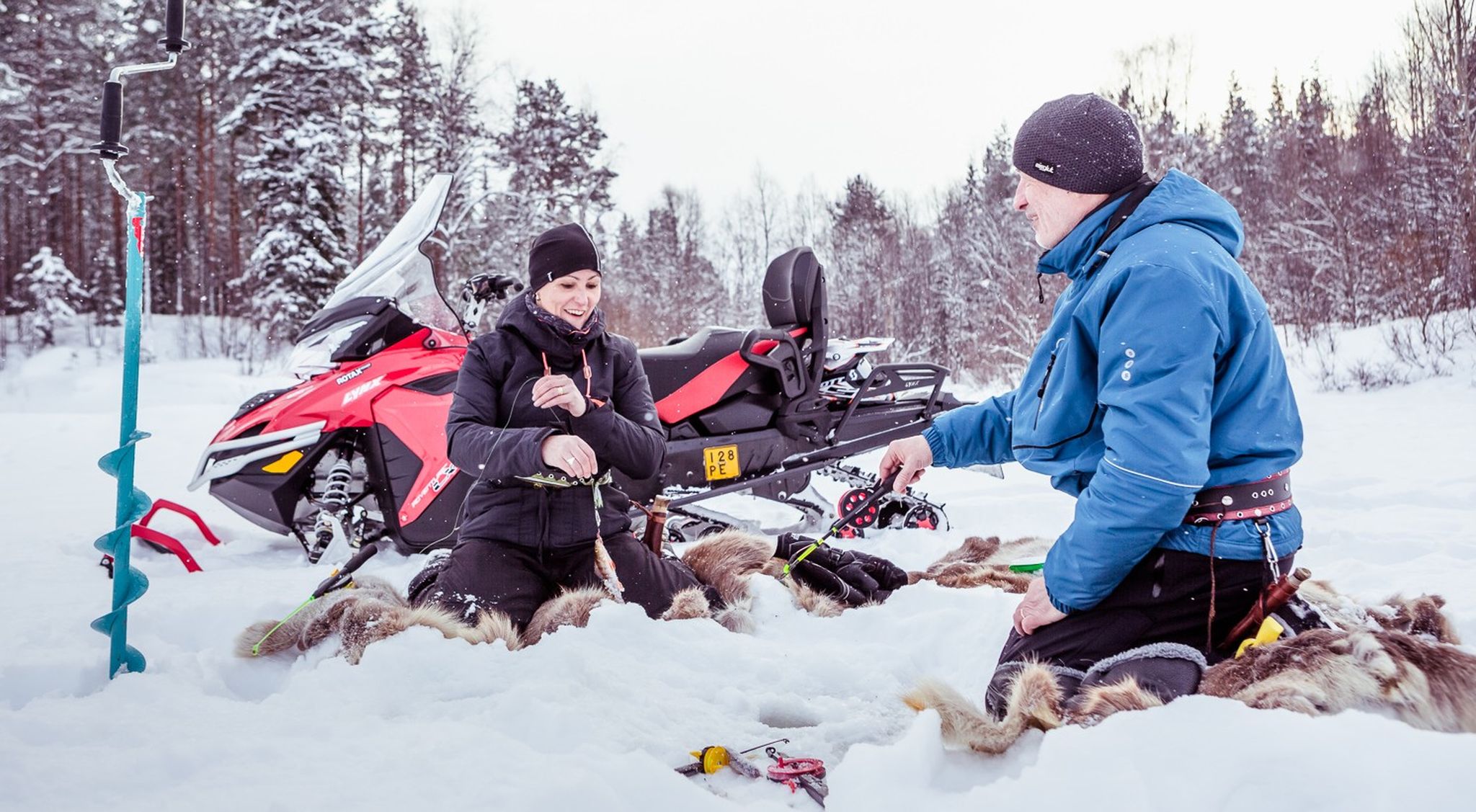 Pilkkiminen on yksi suomalaisten rakkaimmista talvilajeista. Tämä retki vie sinut moottorikelkoilla talviseen maisemaan ja parhaille ottipaikoille. Saavuttuasi idylliselle lammelle, pääset kokeilemaan pilkkionnea ja kokeneen oppaan vinkeillä opit, kuinka mahdollinen saalis valmistetaan avotulella. Et jää tyhjin vatsoin, vaikka saalista ei tulisikaan, sillä nuotion ääressä juodaan nokipannukahvit ja nautitaan retkieväät ennen paluuta hotellille.