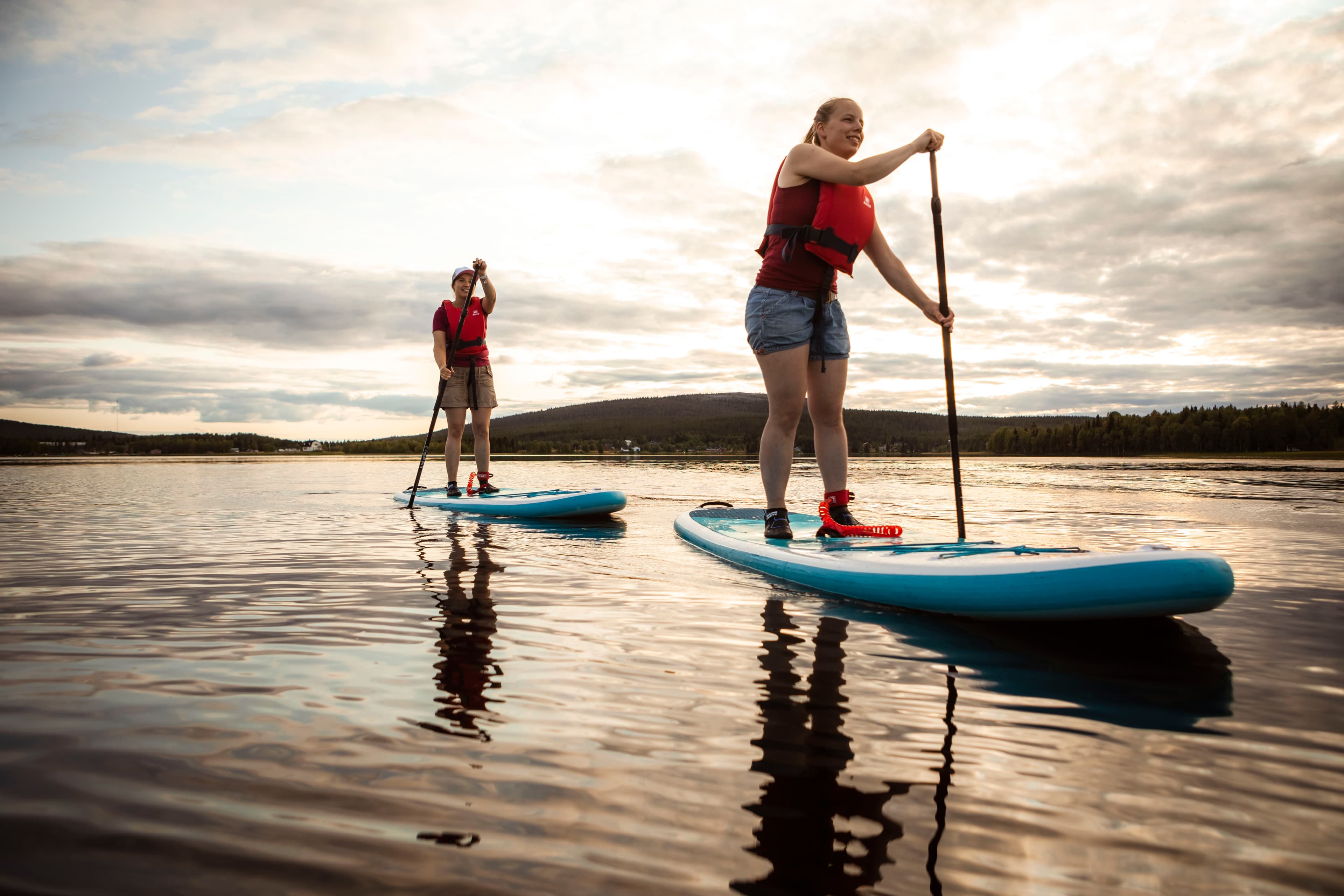 La planche à pagaie, ou SUP, offre des avantages pour la forme physique de tout le corps, et la réalisation d'une activité vraiment ultime basée sur la nature. Pagayez facilement sur les eaux calmes en explorant les rives ou profitez d'un exercice dynamique en planche. Disponible à Rovaniemi, Ylläs et Saariselkä.